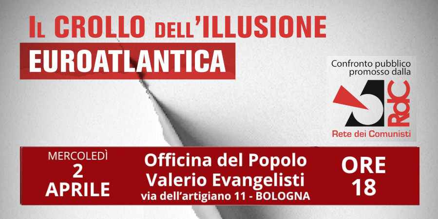Del crollo dell’illusione euroatlantica, dopo l’iniziativa promossa dalla Rete dei Comunisti al Nuovo Cinema l’Aquila la mattina del 29 marzo, ne parleremo MERCOLEDÌ 2 APRILE ALLE ORE 18 PRESSO L’OFFICINA DEL POPOLO VALERIO EVANGELISTI (via dell’artigiano 11)