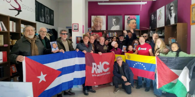 [Rete dei Comunisti – Campania] Interventi di Esqia Rubin, console generale del Venezuela a Napoli e Luciano Vasapollo della Rete dei Comunisti. Oggi alla libreria Malía a Caserta il primo appuntamento in Campania di presentazione del “Libro Blu” di Hugo Chavez, con gli interventi di Esqia Rubin, console generale del Venezuela a Napoli e Luciano Vasapollo della Rete dei Comunisti. Con la presentazione di questo testo, un vero e proprio manifesto del socialismo del XXI secolo, vogliamo intensificare la campagna di solidarietà con il Venezuela bolivariano, che ha coinvolto tante piazze e tanti popoli in tutto il mondo in seguito al rapimento di Maduro e di Cilia Flores.